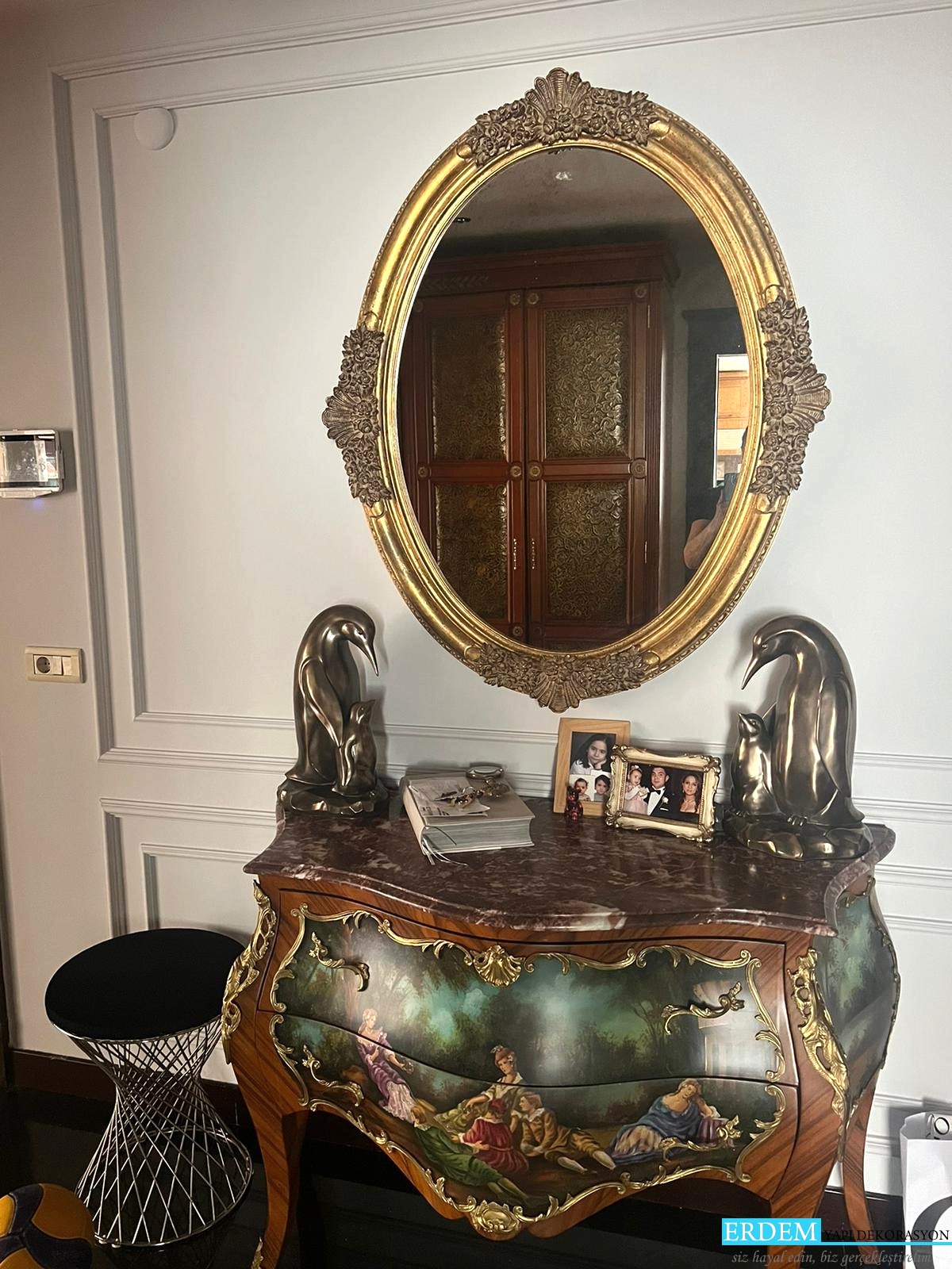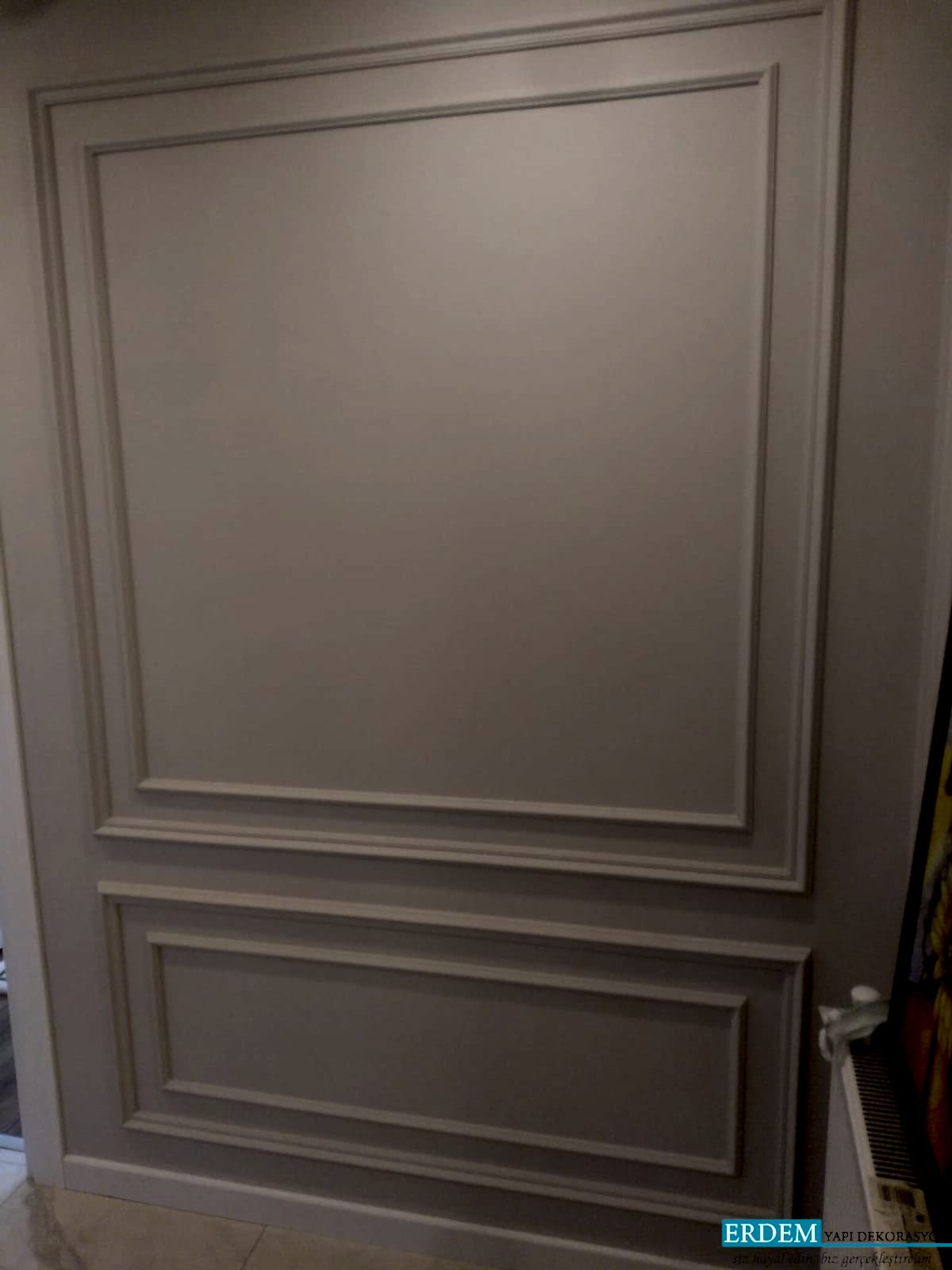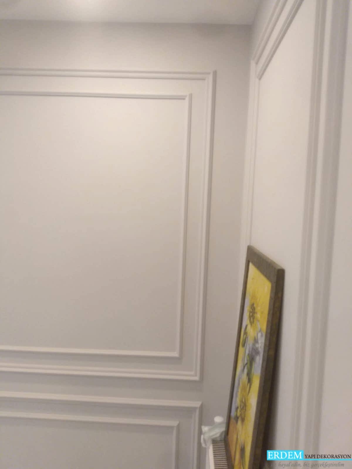 �stanbulda Çaml�ca'daki mü�terimizin ya�am alan�na poliüretan duvar ç�tas� uygulamas� yap�lm��y�r. Dekoratif Duvar Ç�talar�, yüzeylerdeki derzleri, bo�luklar� ve di�er kusurlar� gizlemek için tasarlanm��t�r, ancak ço�u insan odalar�na dö�eme ekler çünkü bu cesur bir tasar�m ifadesidir. Beyaz kaplama, koyu renkli duvarlara kar�� çarp�c� bir vurgu olu�turuyor ve bu odalar� resmi, geleneksel bir görünüme büründürüyor.