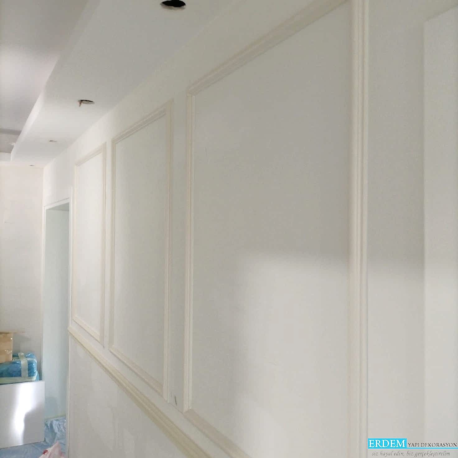 Poliüretan ç�ta, �stanbul Anadolu Yakas� uygulamas� yap�lm��t�r. Erdem Dekorasyonun modern ekipman� ve deneyimli personelleri, güzel haz�rlanm�� duvar ç�talar�n� h�zl� ve uygun maliyetli bir �ekilde olu�turur. Mü�terimizin ya�am alan�n�n koridor k�sm�na poliüretan ç�ta montaj� tamamland�ktan sonra dekoratif çal��malar haz�r hale getirilmi�tir.